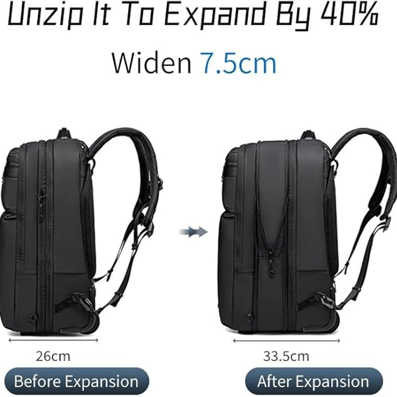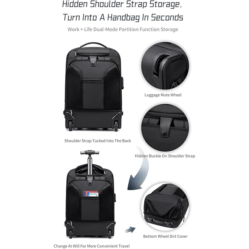 این کیف چندمنظوره بهعنوان کولهپشتی و کیف چرخدار قابل استفاده است و انعطافپذیری و راحتی را در سفر به شما ارائه میدهد. دسته چرخدار، بندهای شانه و چرخها به راحتی قابل مخفی شدن هستند که تجربه استفاده بهتری را فراهم میکند.